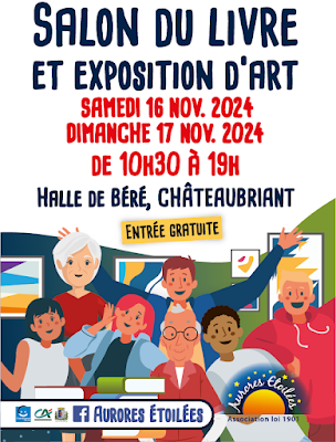 Retrouvez notre maison d'édition associative au Salon du livre de Châteaubriant.  Organisé par l'association Aurores étoilées, il se tiendra samedi 16 et dimanche 17 novembre, de 10h30 à 19h, halle de Béré.